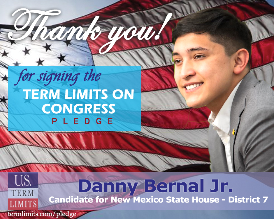The U.S. Term Limits pledge is provided to candidates and members of state legislatures. It reads, “I pledge that, as a member of the state legislature, I will cosponsor, vote for, and defend the resolution applying for an Article V convention for the limited purpose of enacting term limits on Congress.”