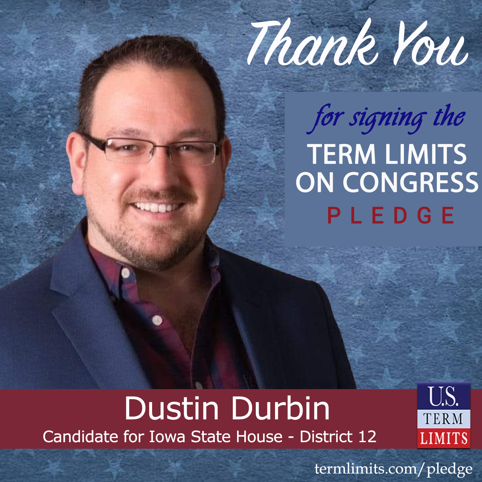 USTL President, Philip Blumel, commented on Durbin’s pledge saying, “Dustin’s strong support of term limits shows that there are individuals who are willing to listen to the majority of voters who want term limits. America needs a Congress that will be served by citizen legislators, not career politicians.”