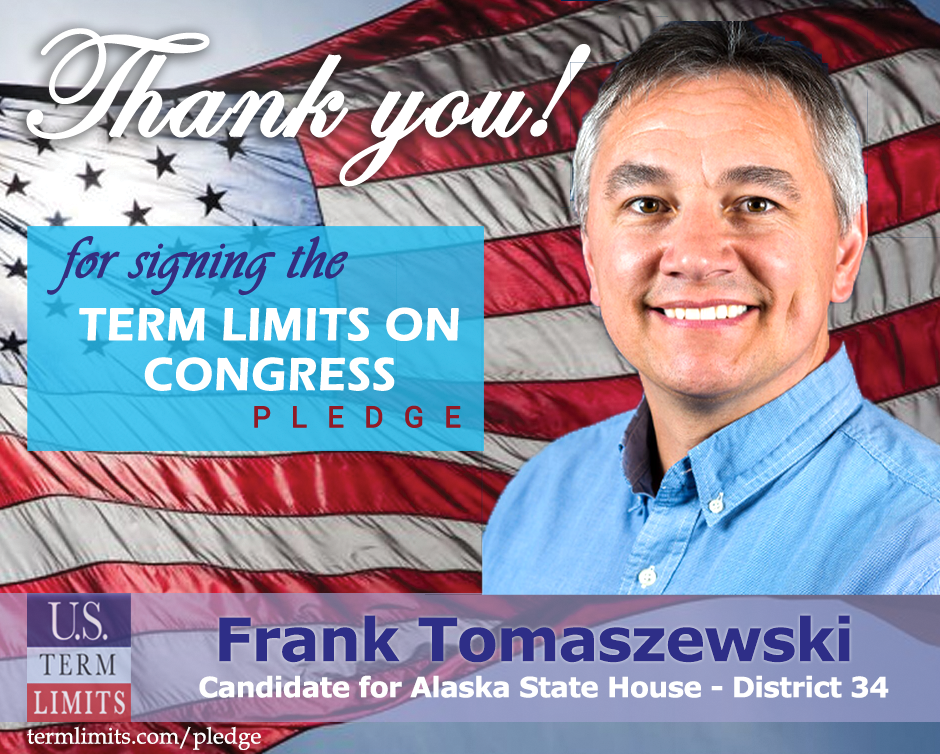 The U.S. Term Limits pledge is provided to candidates and members of state legislatures. It reads, “I pledge that, as a member of the state legislature, I will cosponsor, vote for, and defend the resolution applying for an Article V convention for the limited purpose of enacting term limits on Congress.”