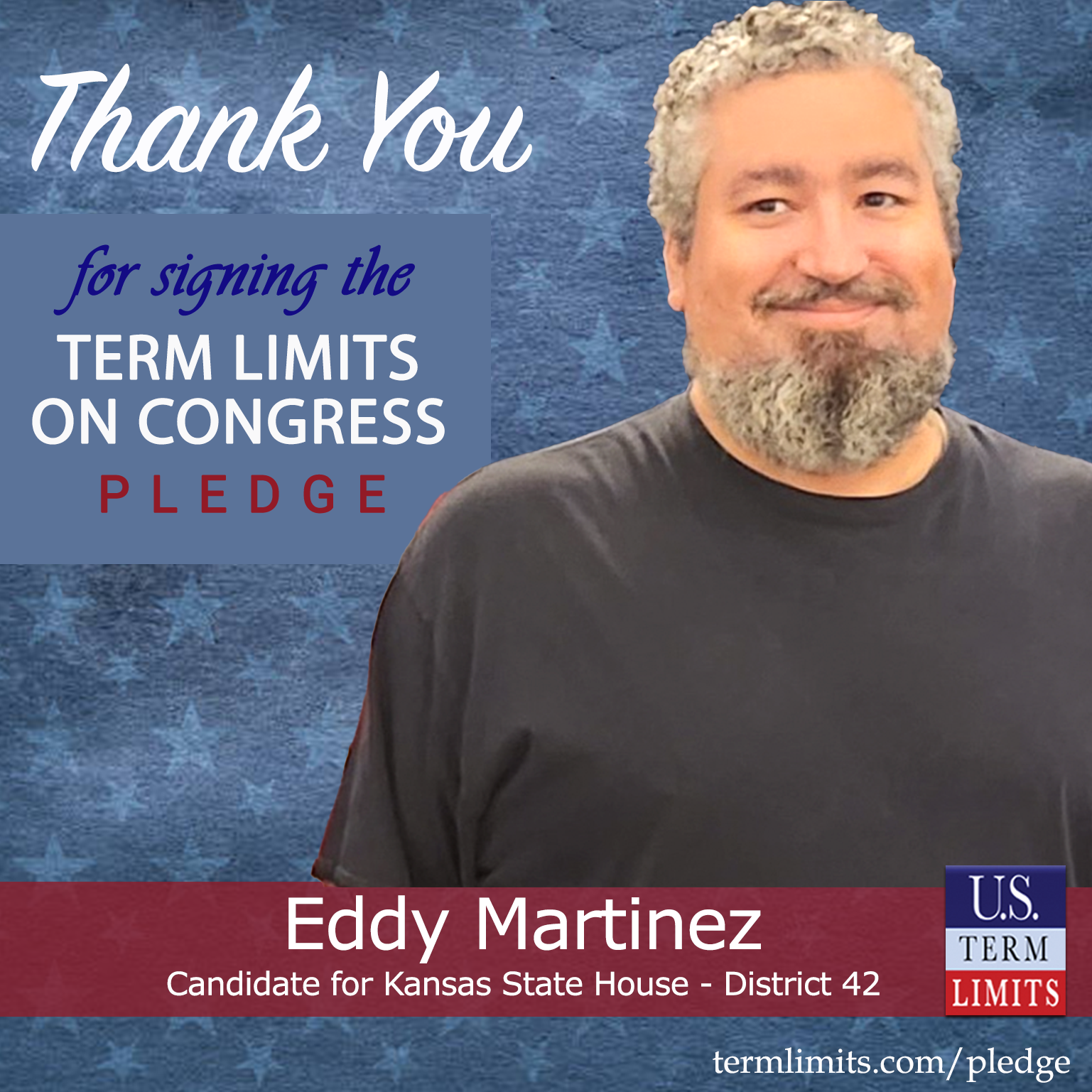 Tonganoxie, KS – U.S. Term Limits (USTL), the leader in the national, non-partisan movement to limit terms for elected officials, is gathering support from state lawmakers across the nation. Its mission is to get 34 states to apply for an amendment proposal convention specific to term limits on Congress. Kansas state house candidate, Eddy Martinez (District 42), has committed support for term limits on Congress by signing the term limits convention pledge. Previously, incumbent Rep. Lance Neelly also signed the pledge.