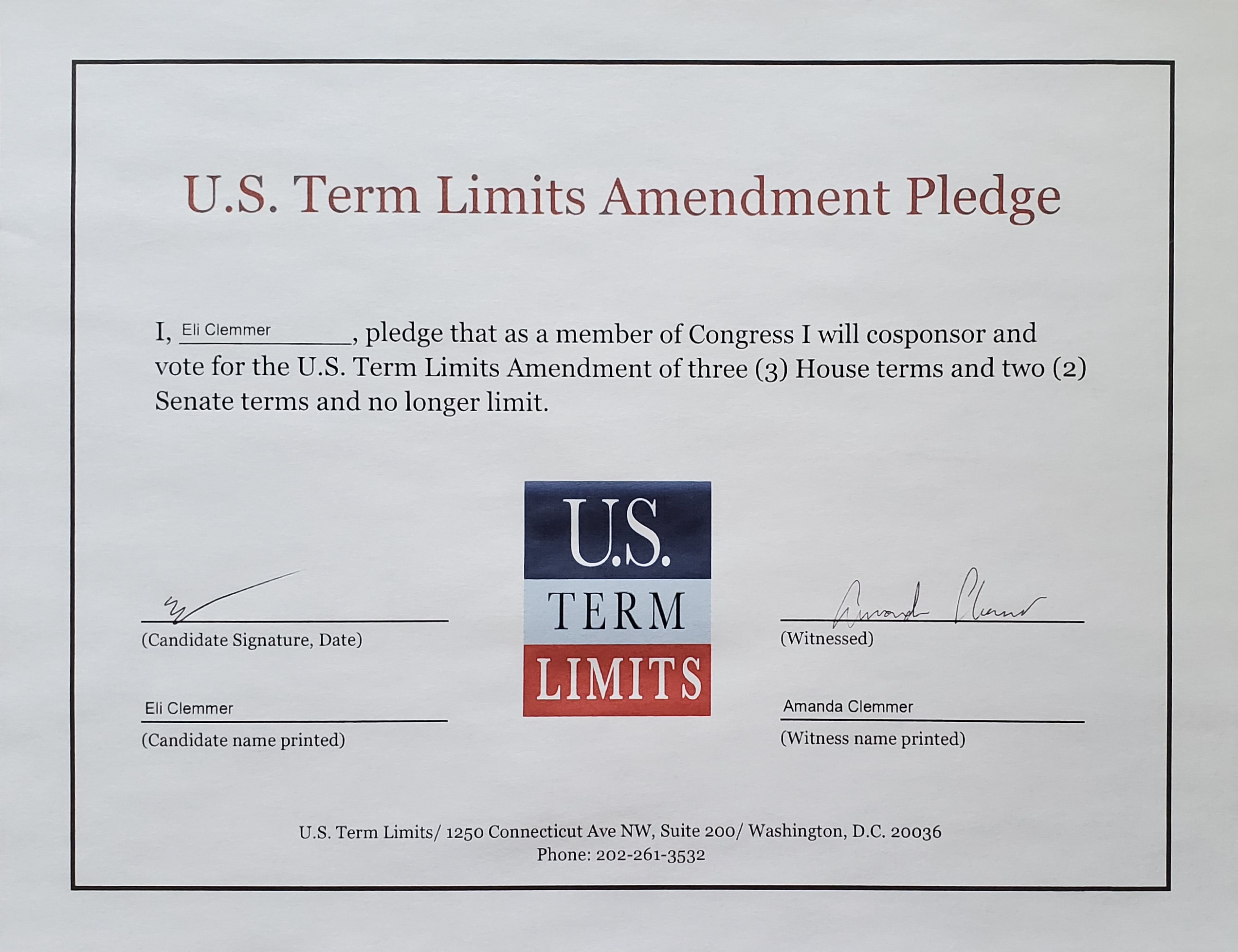 Eli Clemmer Pledges to Support Term Limits on Congress