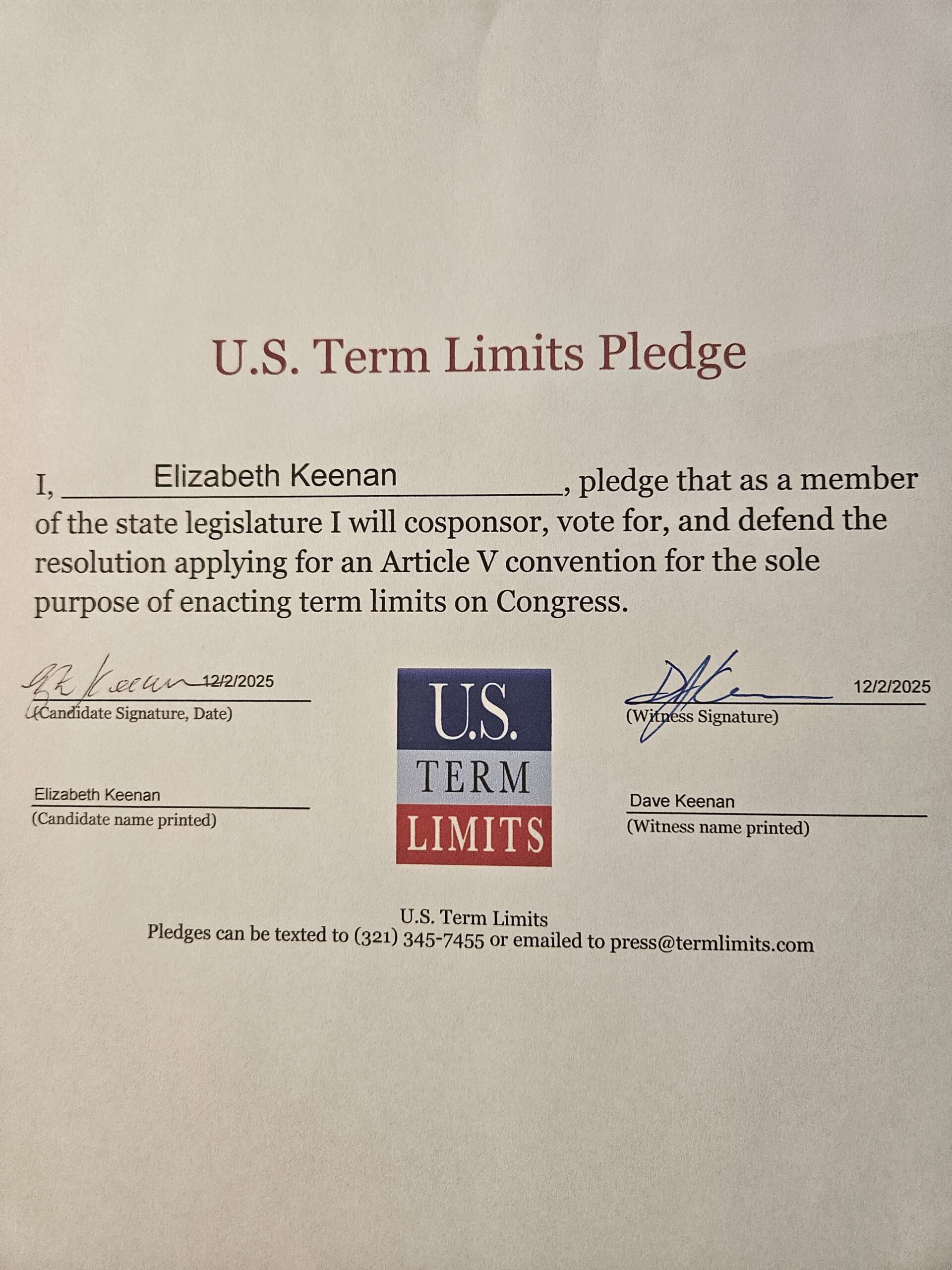 Elizabeth Keenan Pledges to Support Congressional Term Limits