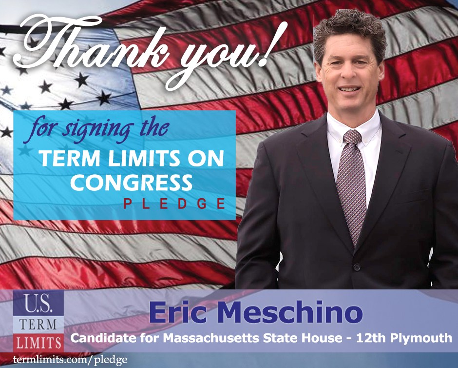 Plymton, MA – U.S. Term Limits (USTL), the leader in the national, non-partisan movement to limit terms for elected officials, is gathering support from state lawmakers across the nation. Its mission is to get 34 states to apply for an amendment proposal convention specific to term limits on Congress. Massachusetts state house candidate, Eric Meschino (Plymouth 12), has committed support for term limits on Congress by signing the Term Limits Convention pledge.