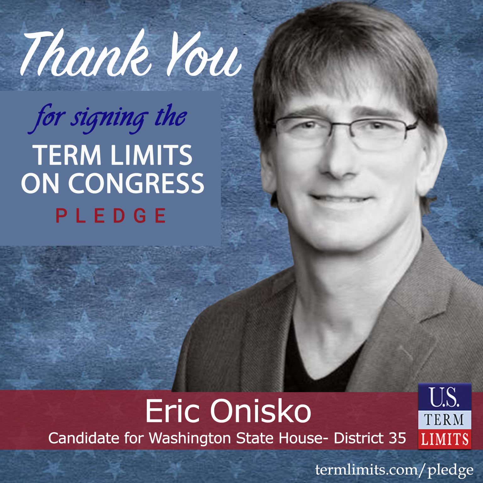 Olympia, WA – U.S. Term Limits (USTL), the leader in the national, non-partisan movement to limit terms for elected officials, is gathering support from state lawmakers across the nation. Its mission is to get 34 states to apply for an amendment proposal convention specific to term limits on Congress. Washington state house candidate, Eric Onisko (District 35 Position 2), has committed support for term limits on Congress by signing the Term Limits Convention Pledge.