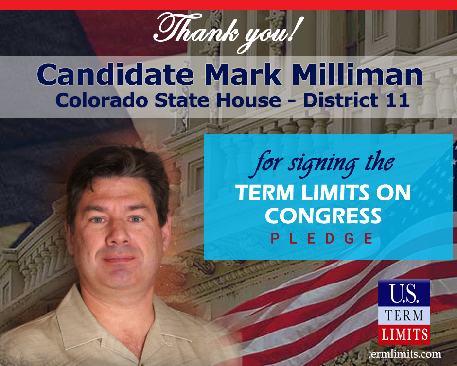 The U.S. Term Limits pledge is provided to candidates and members of state legislatures. It reads, “I pledge that, as a member of the state legislature, I will cosponsor, vote for, and defend the resolution applying for an Article V convention for the limited purpose of enacting term limits on Congress.”