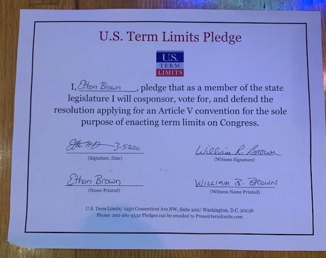 Washington, D.C. – U.S. Term Limits (USTL), the leader in the national, non-partisan movement to limit terms for elected officials, is gathering support from state lawmakers across the nation. Its mission is to get 34 states to apply for an amendment proposal convention specific to term limits on Congress. 2020 Indiana state senate candidate, Ethan Brown (district 7), has committed support for term limits on Congress by signing the Term Limits Convention pledge. Previously, candidates Tabitha Bartley and Vernon Budde also signed the pledge. The primary is scheduled for May 5, 2020.