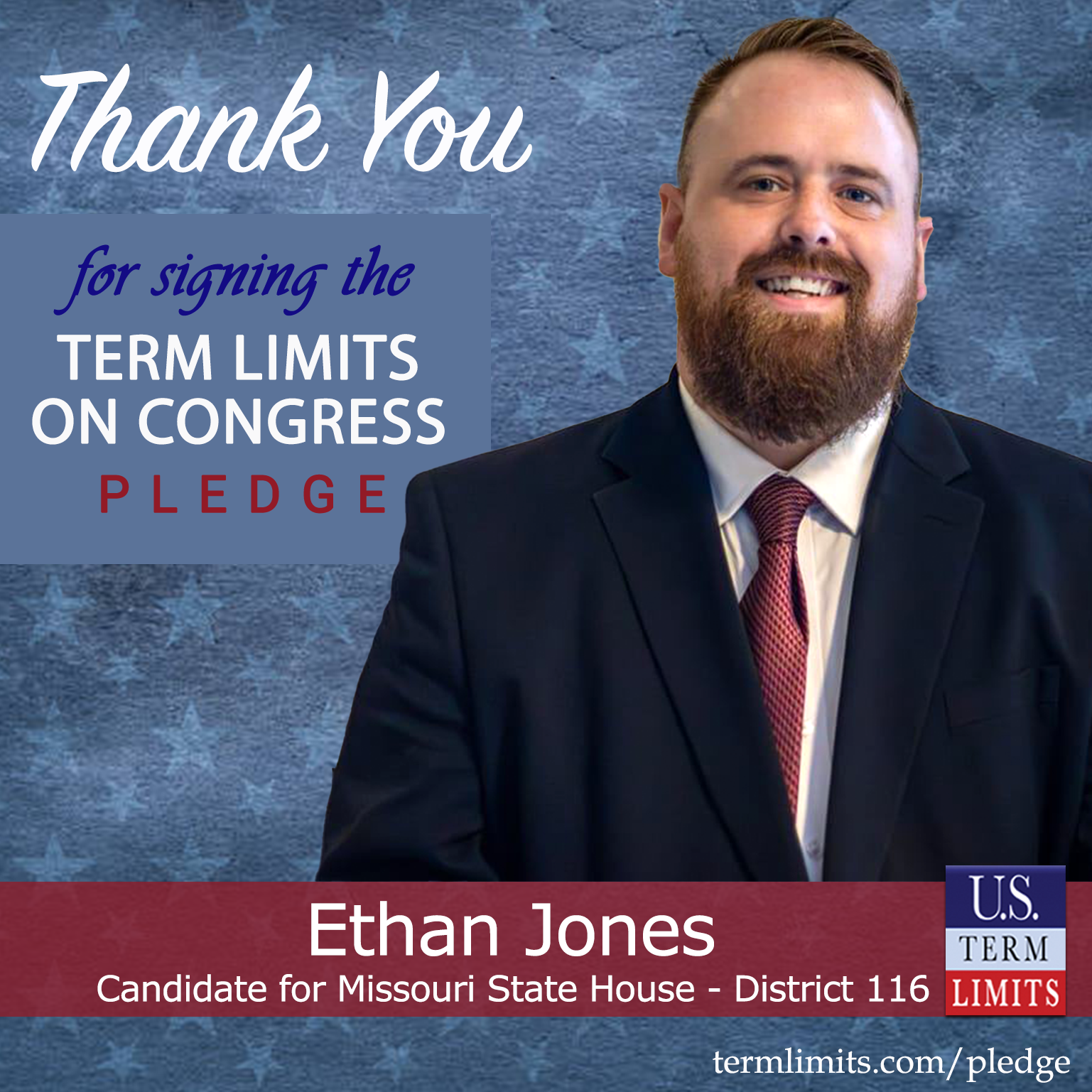 Farmington, MO – U.S. Term Limits (USTL), the leader in the national, non-partisan movement to limit terms for elected officials, is gathering support from state lawmakers across the nation. Its mission is to get 34 states to apply for an amendment proposal convention specific to term limits on Congress. Missouri state house candidate, Ethan Jones (district 116), has committed support for term limits on Congress by signing the term limits convention pledge.