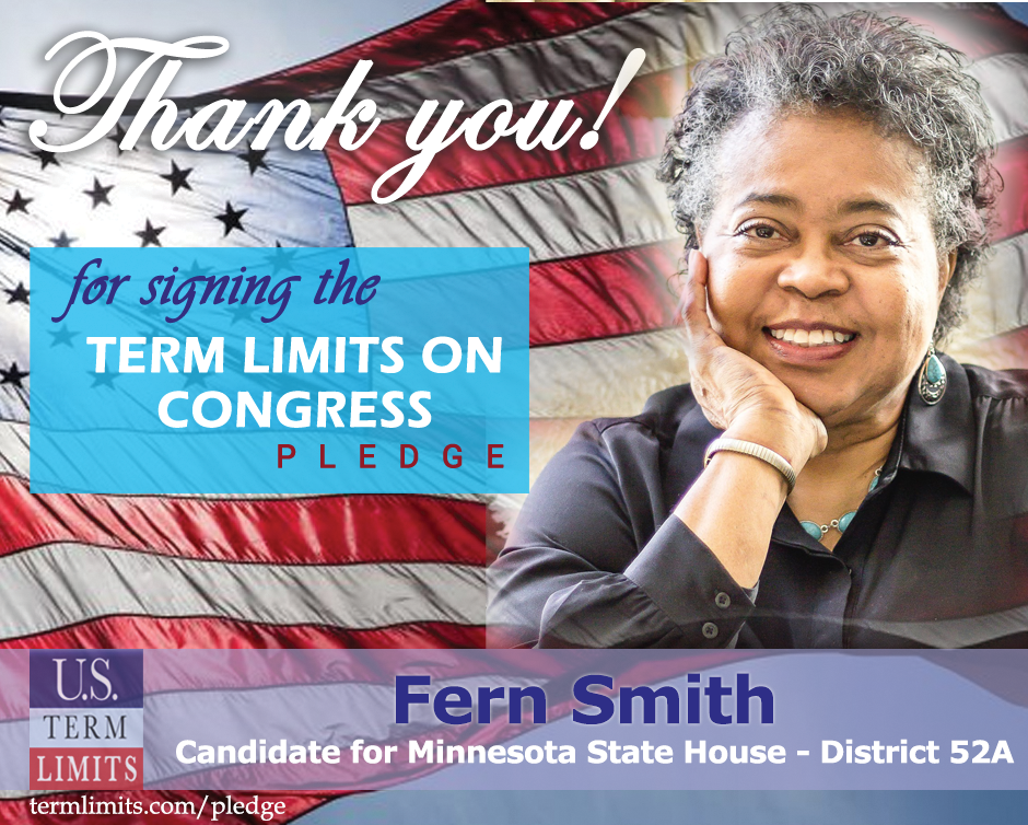 Minneapolis, MN – U.S. Term Limits (USTL), the leader in the national, non-partisan movement to limit terms for elected officials, is gathering support from state lawmakers across the nation. Its mission is to get 34 states to apply for an amendment proposal convention specific to term limits on Congress. Minnesota state house candidate, Fern Smith (district 52A) has committed support for term limits on Congress by signing the Term Limits Convention pledge. Smith is the first signer in this race.