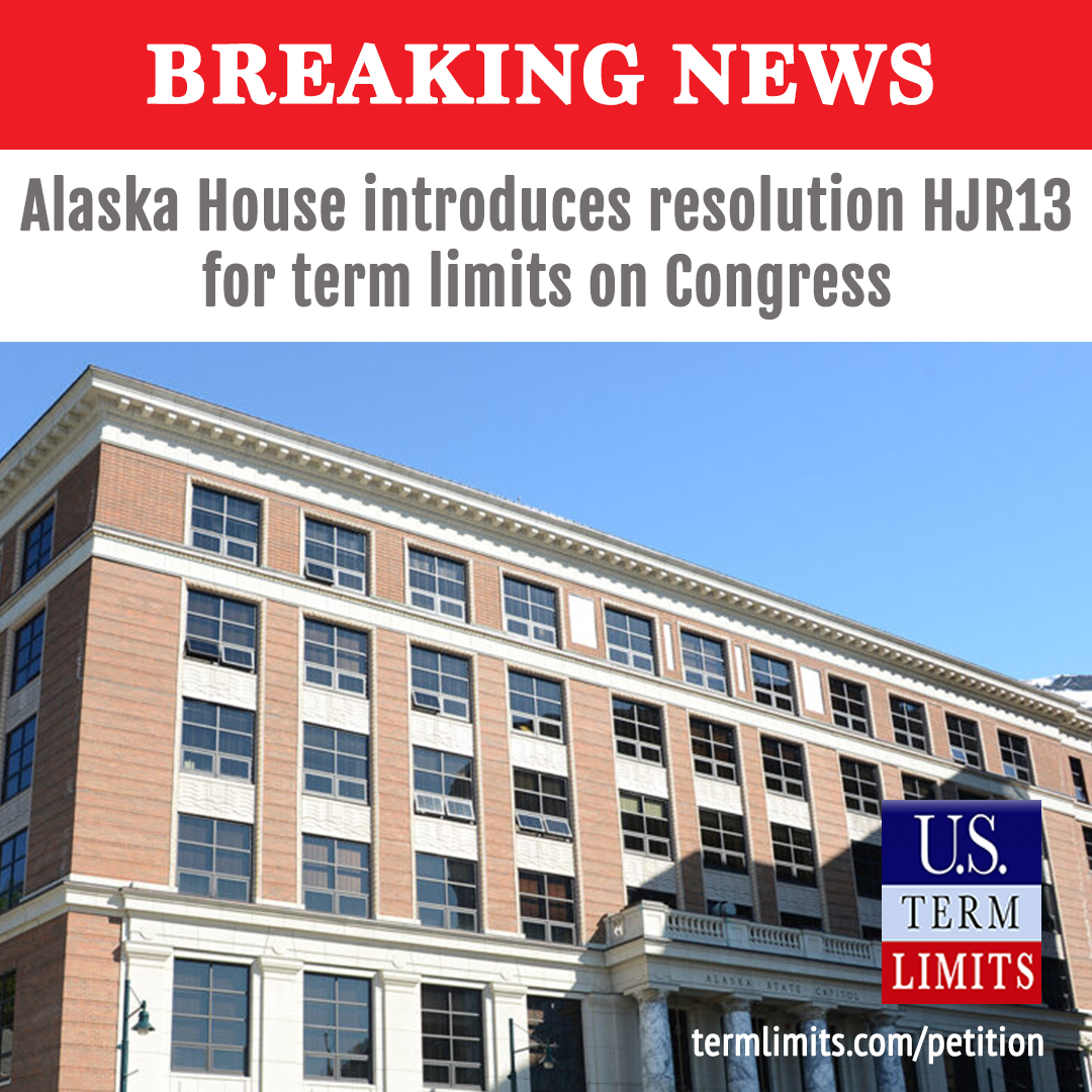 Juneau, AK — The Alaska State House has filed House Joint Resolution (HJR13) for term limits on Congress. This puts Congress on notice that Alaska intends to participate in an amendment proposal convention. The single-issue convention specifies limiting the terms a member of Congress may hold office.