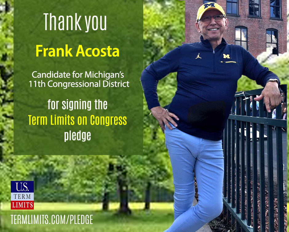Washington, DC – U.S. Term Limits (USTL), the leader in the non-partisan national movement to limit terms for elected officials, praises, 2020 U.S. House candidate for Michigan (district 11), Frank Acosta, for signing the pledge for an amendment to term limit Congress. Previously, Whittney Williams also signed the pledge. The primary election is scheduled for August 4, 2020.