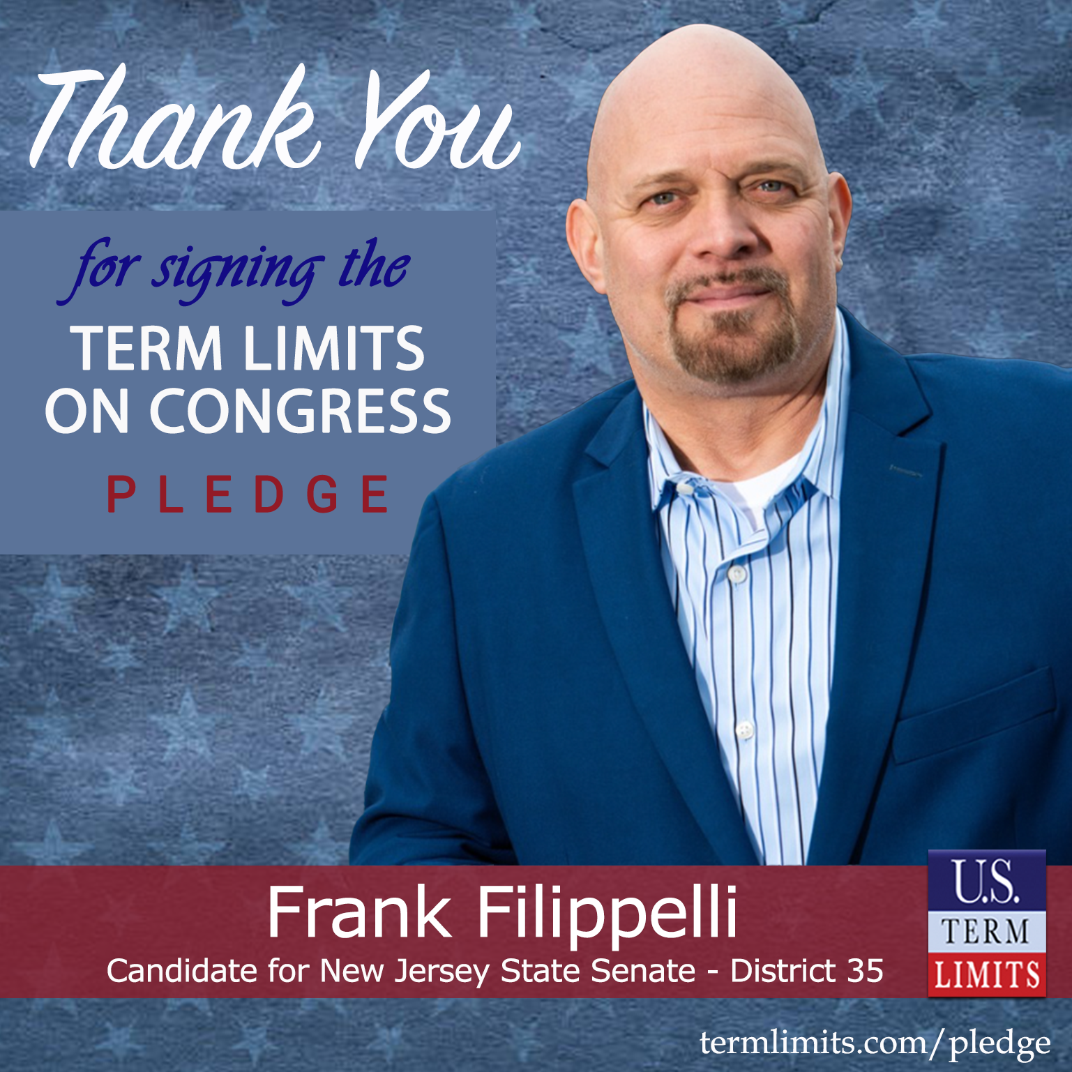 Paterson, NJ – U.S. Term Limits (USTL), the leader in the national, non-partisan movement to limit terms for elected officials, is gathering support from state lawmakers across the nation. Its mission is to get 34 states to apply for an amendment proposal convention specific to term limits on Congress. 2025 New Jersey state senate candidate, Frank Filippelli (district 35), has committed support for term limits on Congress by signing the term limits convention pledge. Filippelli is the first signer in this race.