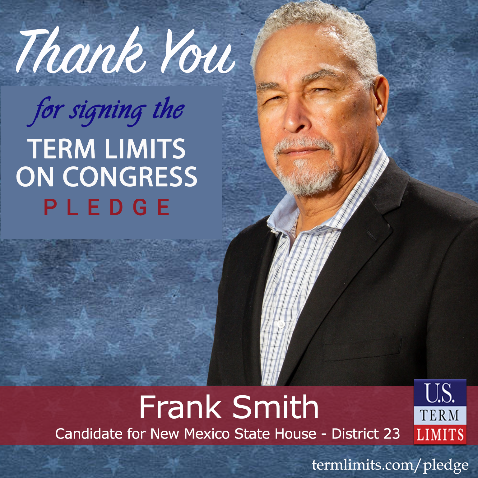 Rio Rancho, NM – U.S. Term Limits (USTL), the leader in the national, non-partisan movement to limit terms for elected officials, is gathering support from state lawmakers across the nation. Its mission is to get 34 states to apply for an amendment proposal convention specific to term limits on Congress. New Mexico state house candidate, Frank Smith (district 23), has committed support for term limits on Congress by signing the term limits convention pledge.