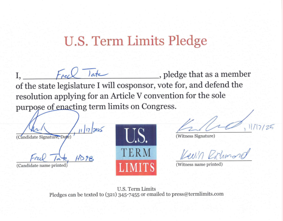 Fred Tate Pledges to Support Congressional Term Limits