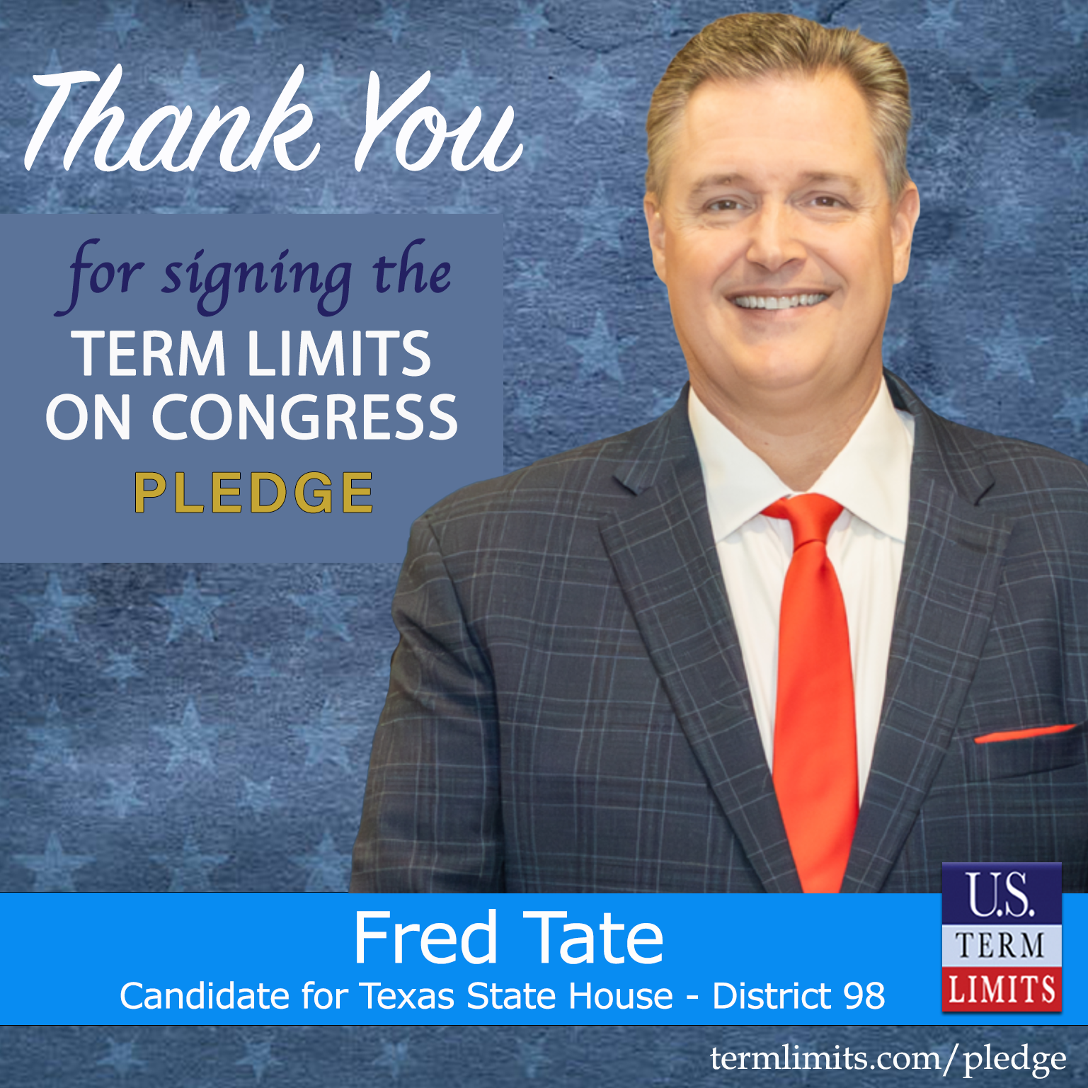 Grapevine, TX – U.S. Term Limits (USTL), the leader in the national, non-partisan movement to limit terms for elected officials, is gathering support from state lawmakers across the nation. Its mission is to get 34 states to apply for an amendment proposal convention specific to term limits on Congress. 2026 Texas state house candidate, Fred Tate (district 98), has committed support for term limits on Congress by signing the term limits convention pledge. Previously, candidate Armin Mizani also signed the pledge.