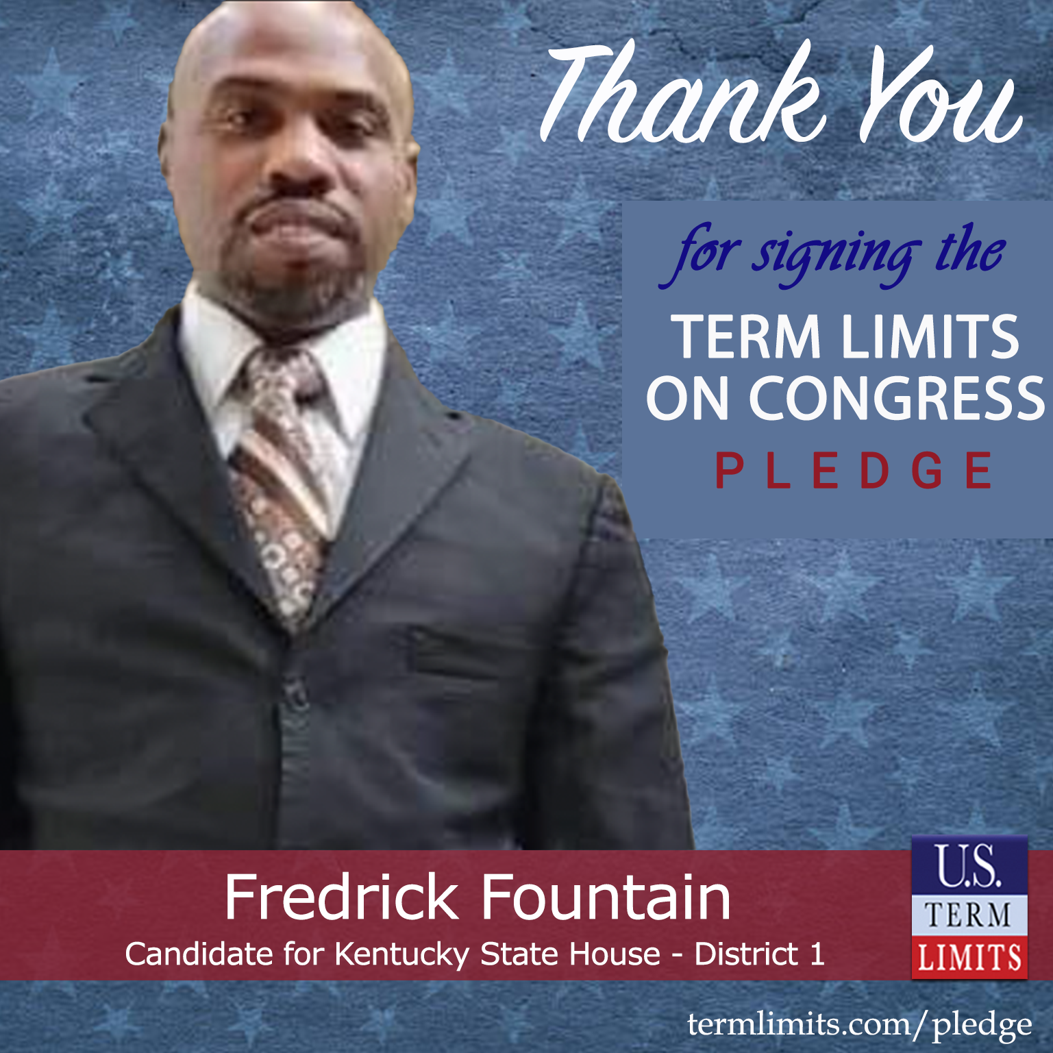 USTL President, Philip Blumel, commented on Fountain’s pledge saying, “Fredrick’s strong support of term limits shows that there are individuals who are willing to listen to the majority of voters who want term limits. America needs a Congress that will be served by citizen legislators, not career politicians.”