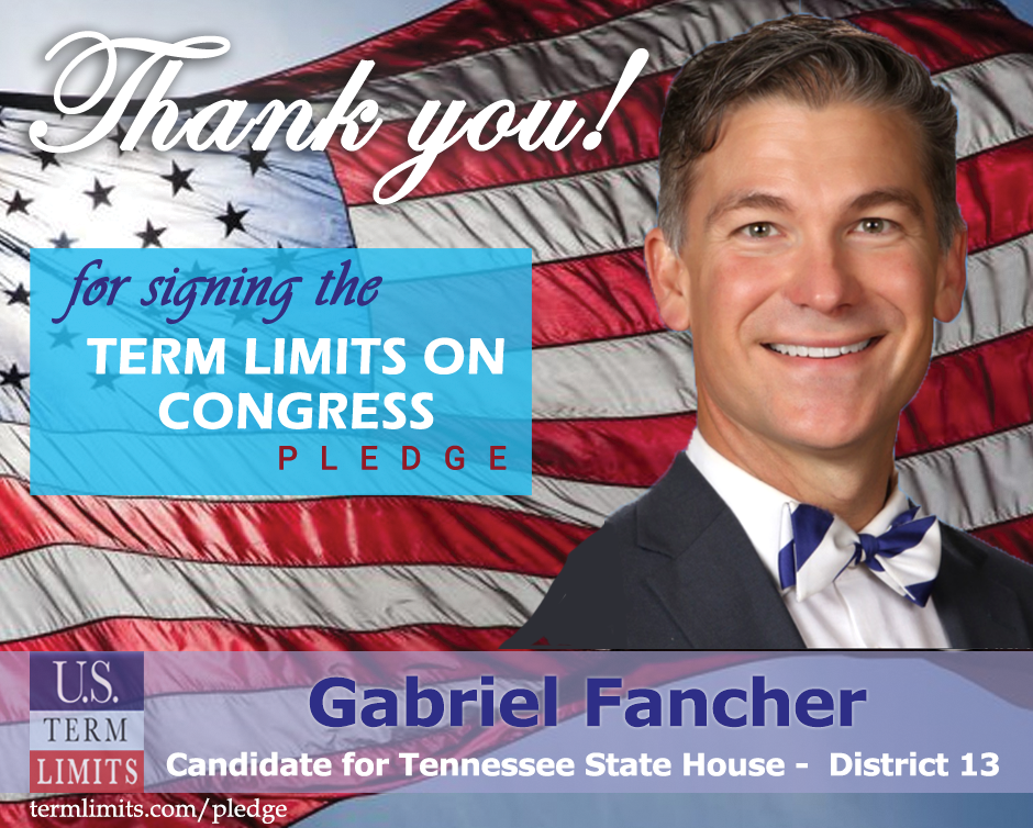 Memphis, TN – U.S. Term Limits (USTL), the leader in the national, non-partisan movement to limit terms for elected officials, is gathering support from state lawmakers across the nation. Its mission is to get 34 states to apply for an amendment proposal convention specific to term limits on Congress. Tennessee state house candidate, Gabriel Fancher (district 13), has committed support for term limits on Congress by signing the U.S. Term Limits pledge. Fancher is the first signer in this race.