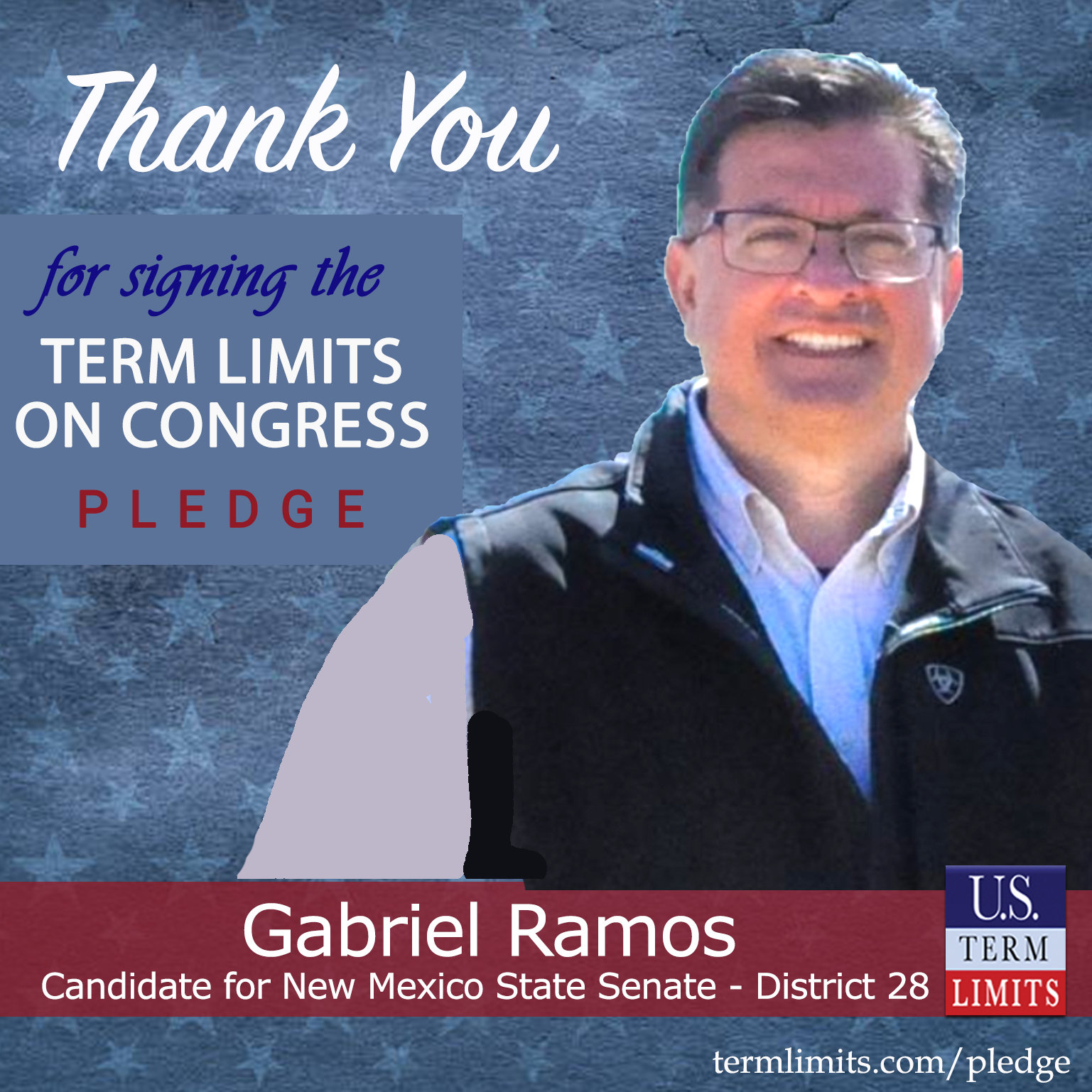 Silver City, NM – U.S. Term Limits (USTL), the leader in the national, non-partisan movement to limit terms for elected officials, is gathering support from state lawmakers across the nation. Its mission is to get 34 states to apply for an amendment proposal convention specific to term limits on Congress. New Mexico state senate candidate, Gabriel Ramos (District 28), has committed support for term limits on Congress by signing the term limits convention pledge. Ramos is the first signer in this race.