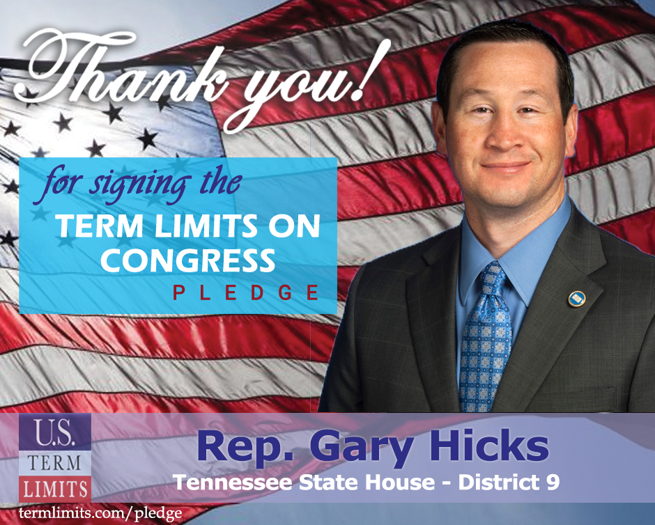 Nashville, TN – U.S. Term Limits (USTL), the leader in the national, non-partisan movement to limit terms for elected officials, is gathering support from state lawmakers across the nation. Its mission is to get 34 states to apply for an amendment proposal convention specific to term limits on Congress. Tennessee State Rep. Gary Hicks (district 9), has committed support for term limits on Congress by signing the Term Limits Convention pledge.