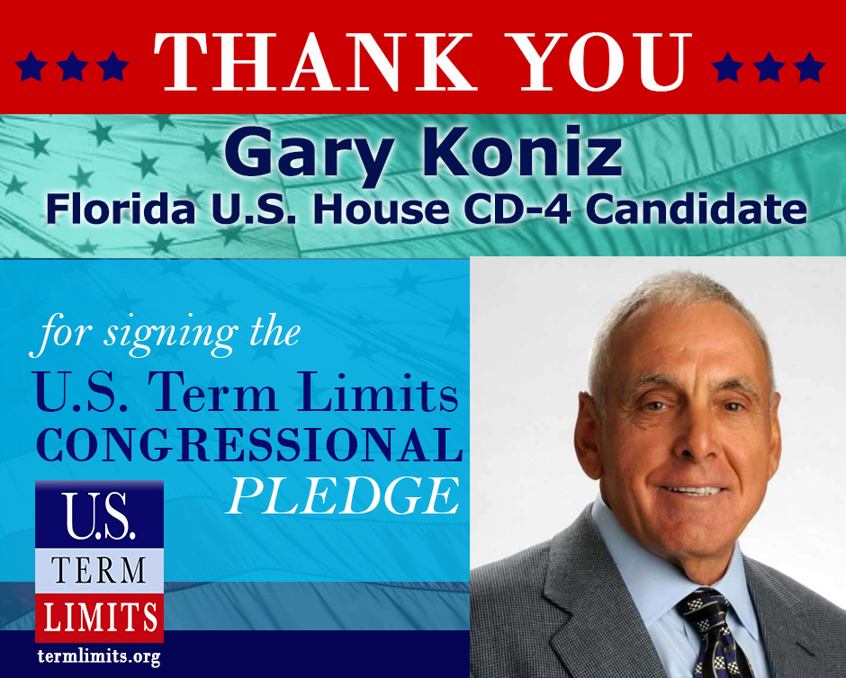 Melbourne, FL – U.S. Term Limits (USTL), the leader in the national movement to limit terms for elected officials, today praised Florida U.S. House candidate, Gary Koniz, for signing its congressional term limits pledge.