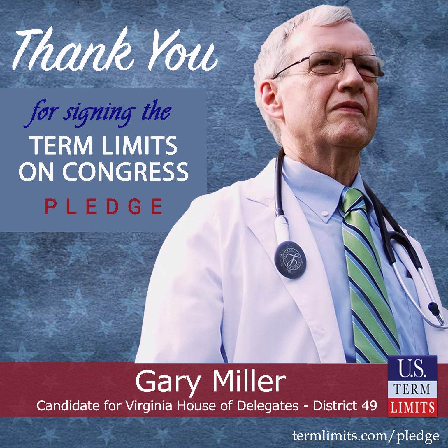 Danville, VA – U.S. Term Limits (USTL), the leader in the national, non-partisan movement to limit terms for elected officials, is gathering support from state lawmakers across the nation. Its mission is to get 34 states to apply for an amendment proposal convention specific to term limits on Congress. 2025 Virginia state house of delegates candidate, Gary Miller (district 49), has committed support for term limits on Congress by signing the term limits convention pledge. Previously, candidate Vanessa Reynolds Scearce also signed the pledge.