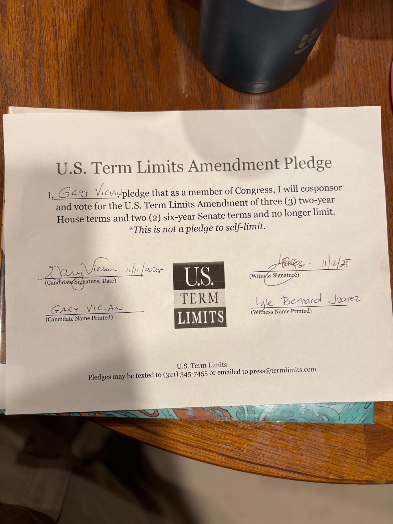 Gary Vician Pledges to Support Congressional Term Limits