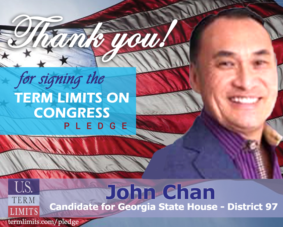 The U.S. Term Limits amendment pledge is provided to every announced candidate for federal office. It reads, “I pledge that as a member of Congress, I will cosponsor and vote for the U.S. Term Limits amendment of three (3) House terms and two (2) Senate terms and no longer limit.”