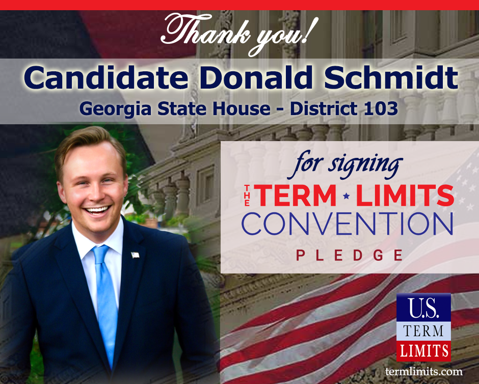 The U.S. Term Limits amendment pledge is provided to every announced candidate for federal office. It reads, “I pledge that as a member of Congress, I will cosponsor and vote for the U.S. Term Limits amendment of three (3) House terms and two (2) Senate terms and no longer limit.” The U.S. Term Limits constitutional amendment has been introduced in both the U.S. Senate by Senator Ted Cruz and his colleagues (SJR3) and the U.S. House by Representative Ralph Norman (HJR12).
