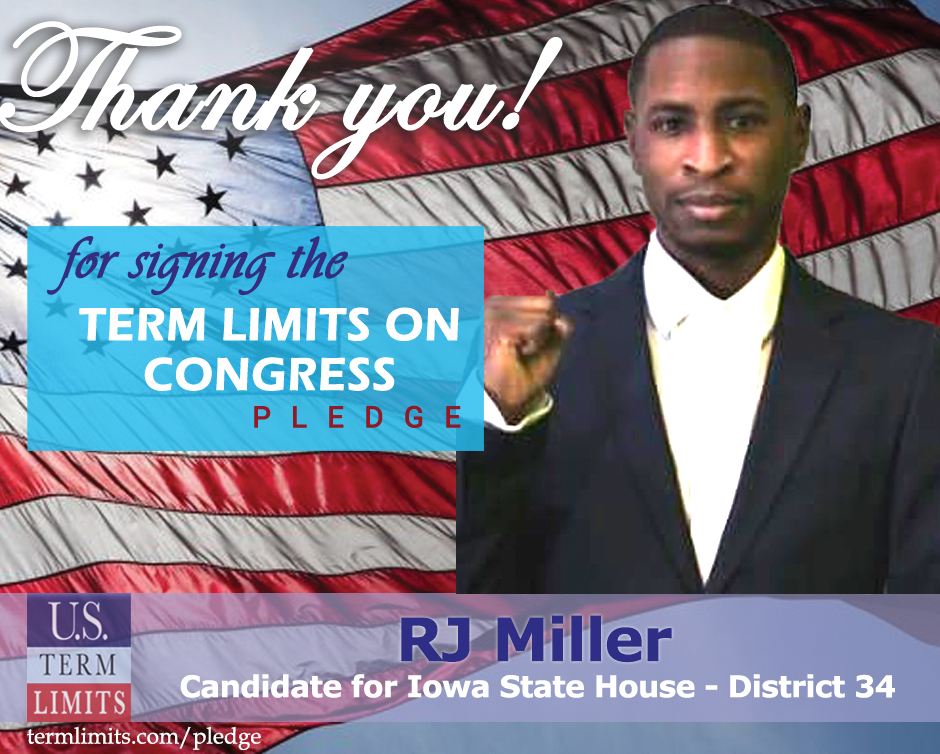 The U.S. Term Limits pledge is provided to candidates and members of state legislatures. It reads, “I pledge that, as a member of the state legislature, I will cosponsor, vote for, and defend the resolution applying for an Article V convention for the sole purpose of enacting term limits on Congress.”