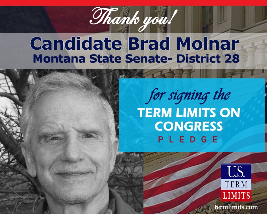 The U.S. Term Limits pledge is provided to candidates and members of state legislatures. It reads, “I pledge that, as a member of the state legislature, I will cosponsor, vote for, and defend the resolution applying for an Article V convention for the limited purpose of enacting term limits on Congress.”