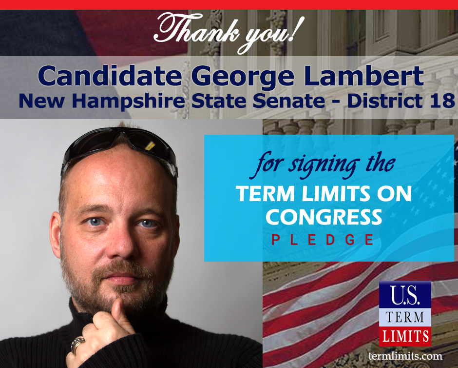 Washington, D.C. – U.S. Term Limits (USTL), the leader in the national, non-partisan movement to limit terms for elected officials, is gathering support from state lawmakers across the nation. Its mission is to get 34 states to apply for an amendment proposal convention specific to term limits on Congress. New Hampshire state senate candidate, George Lambert (district 18), has committed support for term limits on Congress by signing the Term Limits Convention pledge. Lambert is the first signer in this race. The primary election is scheduled for September 8, 2020.
