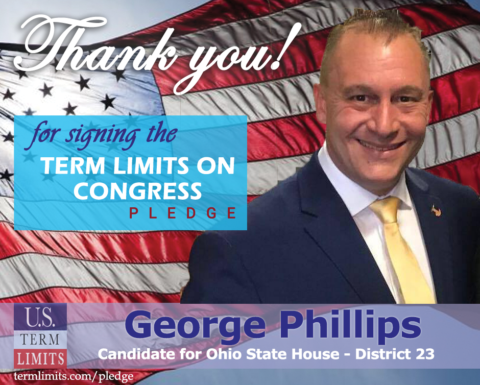 Columbus, OH – U.S. Term Limits (USTL), the leader in the national, non-partisan movement to limit terms for elected officials, is gathering support from state lawmakers across the nation. Its mission is to get 34 states to apply for an amendment proposal convention specific to term limits on Congress. Ohio state house candidate, George Phillips (district 23) has committed support for term limits on Congress by signing the Term Limits Convention pledge. Phillips is the first signer in this race.