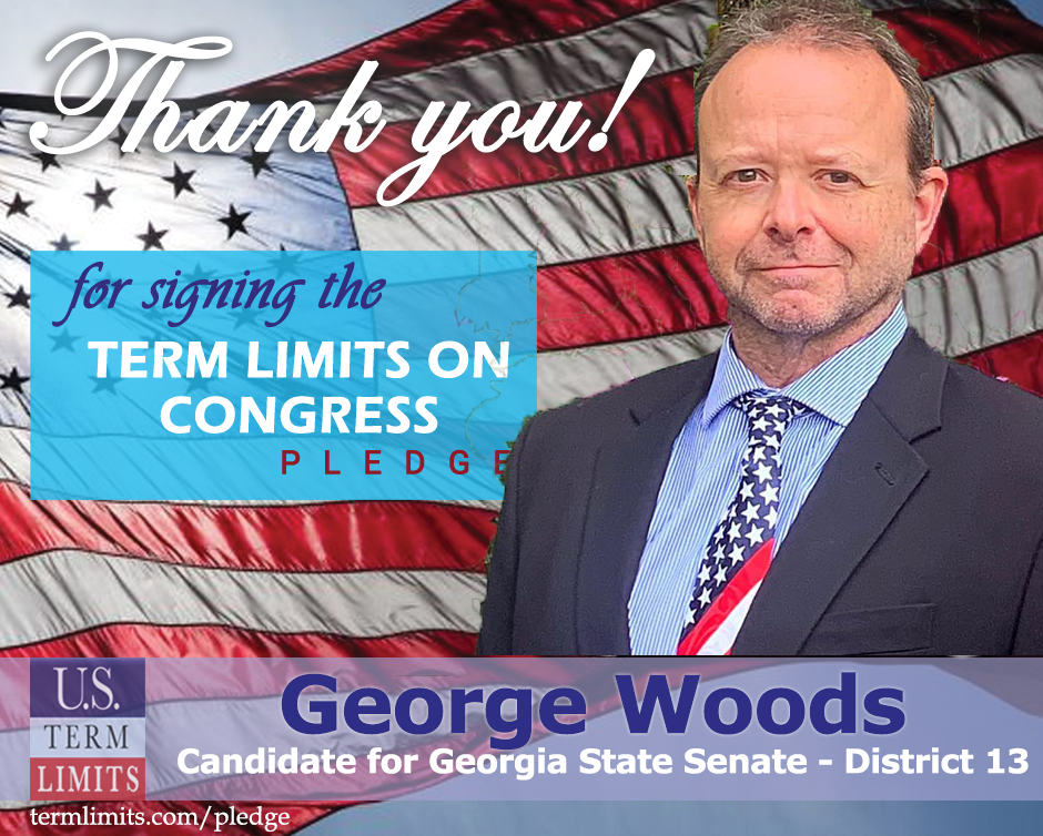 Atlanta, GA– U.S. Term Limits (USTL), the leader in the national, non-partisan movement to limit terms for elected officials, is gathering support from state lawmakers across the nation. Its mission is to get 34 states to apply for an amendment proposal convention specific to term limits on Congress. Georgia state senate candidate, George Woods (district 13), has committed support for term limits on Congress by signing the U.S. Term Limits pledge. Previously, Senator Carden Summers also signed the pledge.