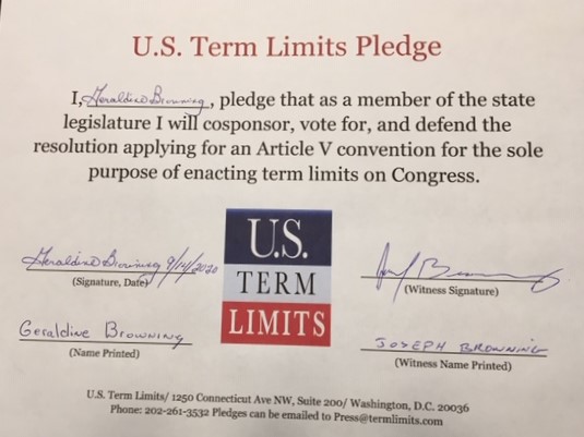 Washington, D.C. – U.S. Term Limits (USTL), the leader in the national, non-partisan movement to limit terms for elected officials, is gathering support from state lawmakers across the nation. Its mission is to get 34 states to apply for an amendment proposal convention specific to term limits on Congress. 2020 Montana state house candidate, Gerry Browning (district 12), has committed support for term limits on Congress by signing the Term Limits Convention pledge.