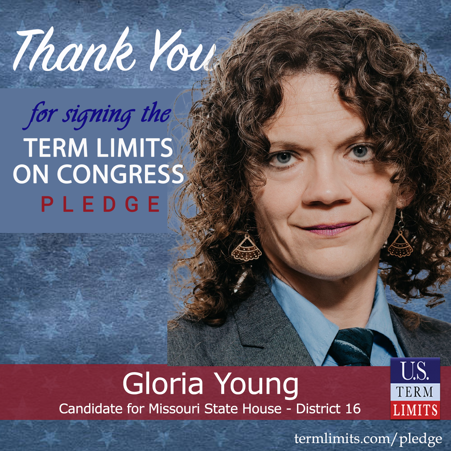 Jefferson City, MO – U.S. Term Limits (USTL), the leader in the national, non-partisan movement to limit terms for elected officials, is gathering support from state lawmakers across the nation. Its mission is to get 34 states to apply for an amendment proposal convention specific to term limits on Congress. Missouri state house candidate, Gloria Young (District 16), has committed support for term limits on Congress by signing the term limits convention pledge.