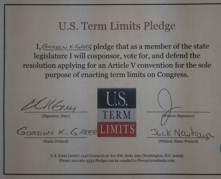 Gordon Greer Pledges to Support Congressional Term Limits