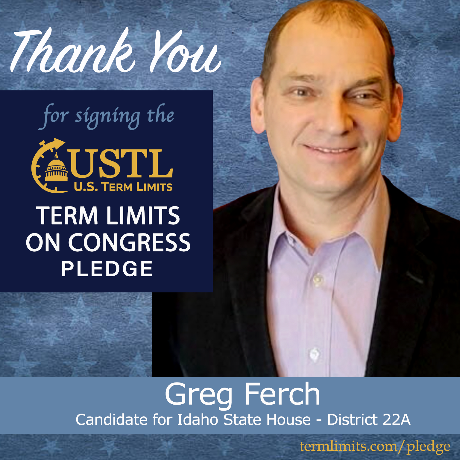 Kuna, ID – U.S. Term Limits (USTL), the leader in the national, non-partisan movement to limit terms for elected officials, is gathering support from state lawmakers across the nation. Its mission is to get 34 states to apply for an amendment proposal convention specific to term limits on Congress. 2026 Idaho state house candidate, Greg Ferch (district 22A), has committed support for term limits on Congress by signing the term limits convention pledge.