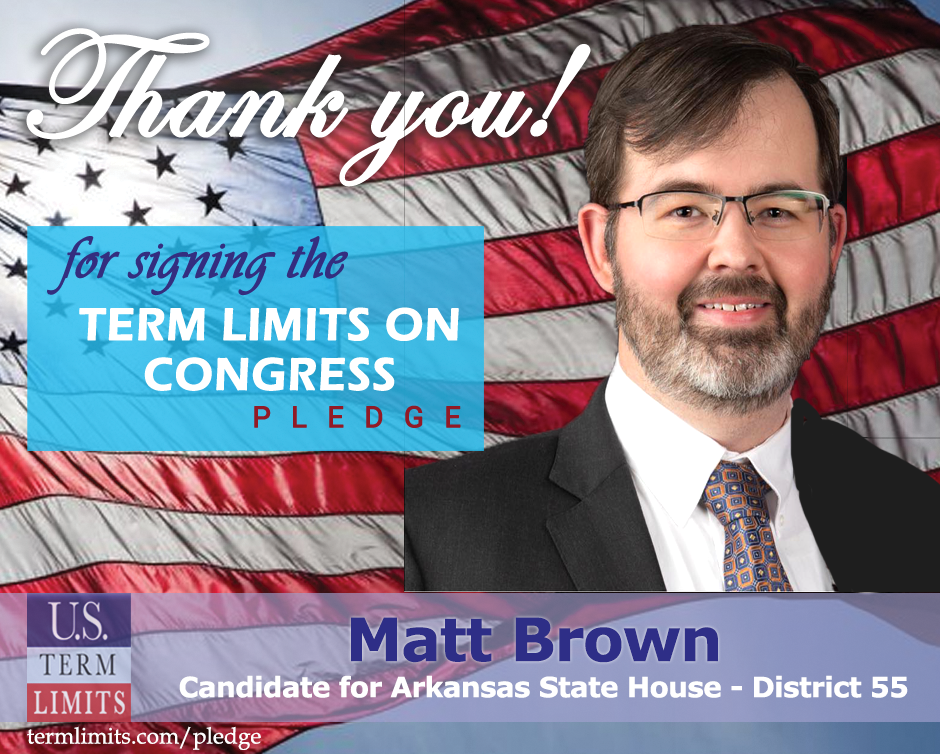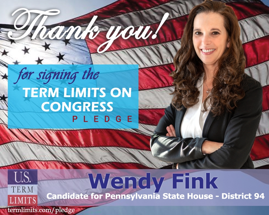 The U.S. Term Limits pledge is provided to candidates and members of state legislatures. It reads, “I pledge that, as a member of the state legislature, I will cosponsor, vote for, and defend the resolution applying for an Article V convention for the limited purpose of enacting term limits on Congress.”