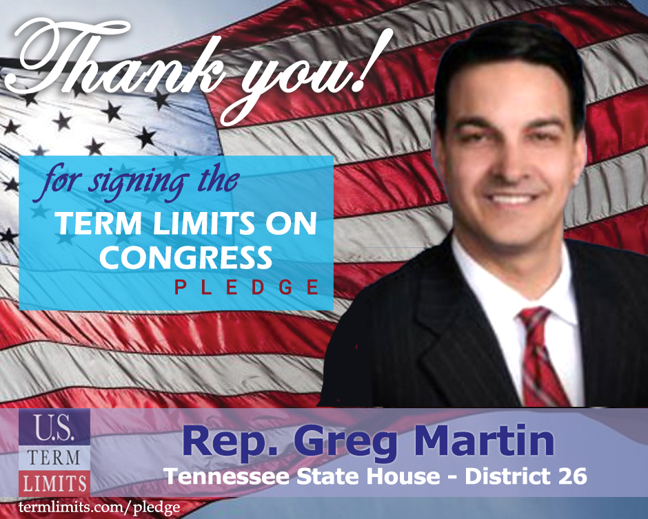 Memphis, TN – U.S. Term Limits (USTL), the leader in the national, non-partisan movement to limit terms for elected officials, is gathering support from state lawmakers across the nation. Its mission is to get 34 states to apply for an amendment proposal convention specific to term limits on Congress. Tennessee state house Rep. Greg Martin (district 26), has committed support for term limits on Congress by signing the U.S. Term Limits pledge.