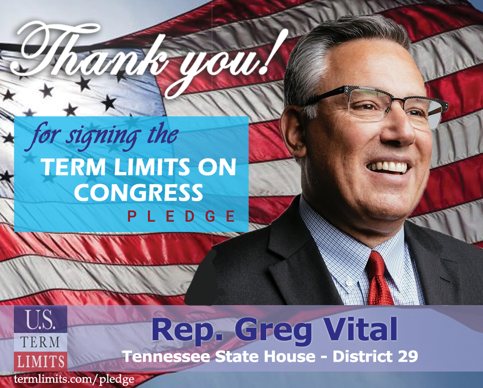 Nashville, TN – U.S. Term Limits (USTL), the leader in the national, non-partisan movement to limit terms for elected officials, is gathering support from state lawmakers across the nation. Its mission is to get 34 states to apply for an amendment proposal convention specific to term limits on Congress. Tennessee State Rep. Greg Vital (district 29), has committed support for term limits on Congress by signing the Term Limits Convention pledge.