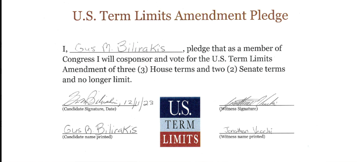 Washington D.C. – U.S. Term Limits (USTL), the leader in the non-partisan national movement to limit terms for elected officials, praises 2024 U.S. House Representative for Florida, Gus Bilirakis (district 12), for signing the pledge for an amendment to term limit Congress.