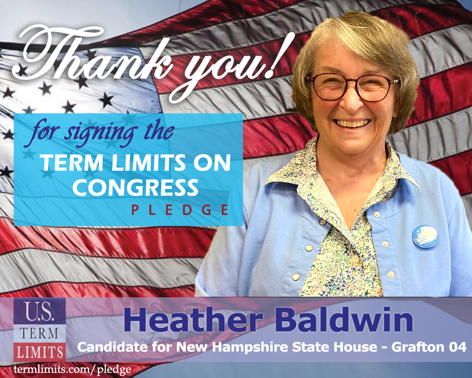 Thornton, NH – U.S. Term Limits (USTL), the leader in the national, non-partisan movement to limit terms for elected officials, is gathering support from state lawmakers across the nation. Its mission is to get 34 states to apply for an amendment proposal convention specific to term limits on Congress. 2022 New Hampshire state house candidate, Heather Baldwin (Grafton 4), has committed support for term limits on Congress by signing the Term Limits Convention pledge.