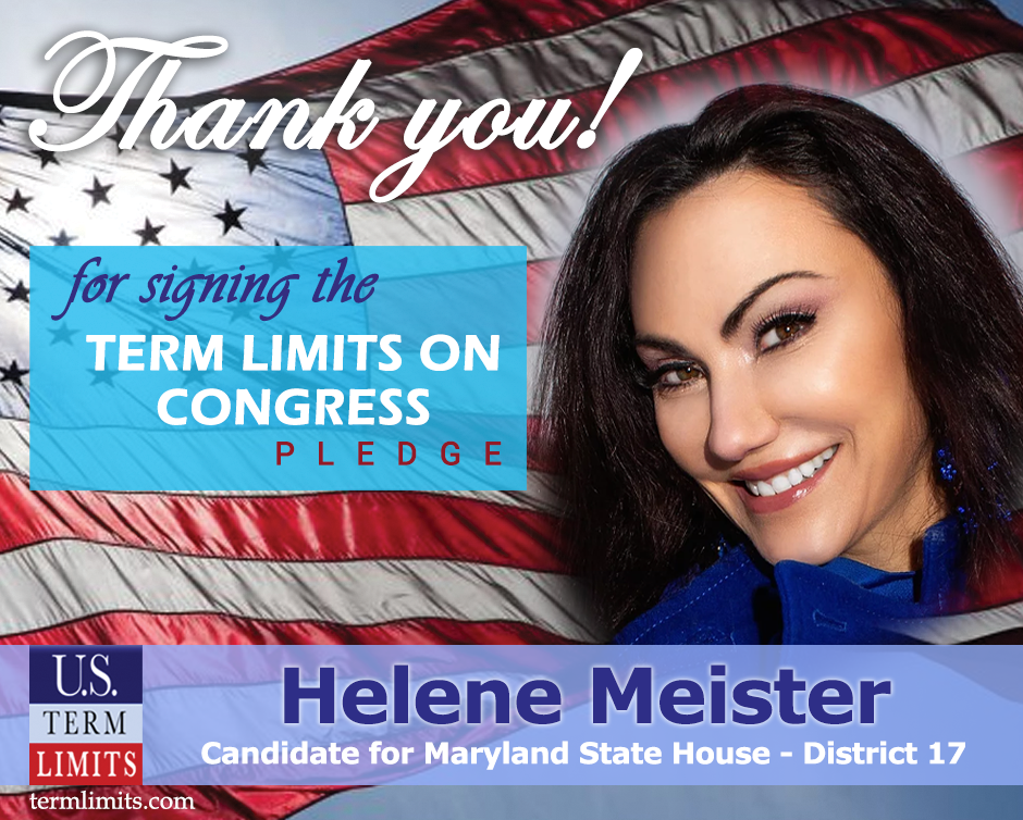 Baltimore, MD – U.S. Term Limits (USTL), the leader in the national, non-partisan movement to limit terms for elected officials, is gathering support from state lawmakers across the nation. Its mission is to get 34 states to apply for an amendment proposal convention specific to term limits on Congress. Maryland house of delegates candidate, Helene Meister (district 17), has committed support for term limits on Congress by signing the Term Limits Convention pledge. Previously, candidate Donald Patti also signed the pledge.