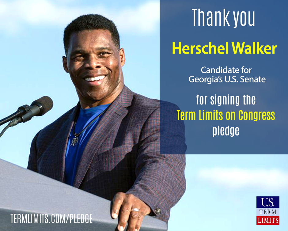 “Herschel Walker is a name known throughout Georgia for his playing days at UGA and I am thrilled that Herschel has signed the pledge supporting term limits on Congress is on the U.S. Term Limits team. We are gaining momentum throughout Georgia so that we can join the growing number of states supporting congressional term limits.”, said Dr. John Cowan, Georgia State Chair for U.S. Term Limits.”