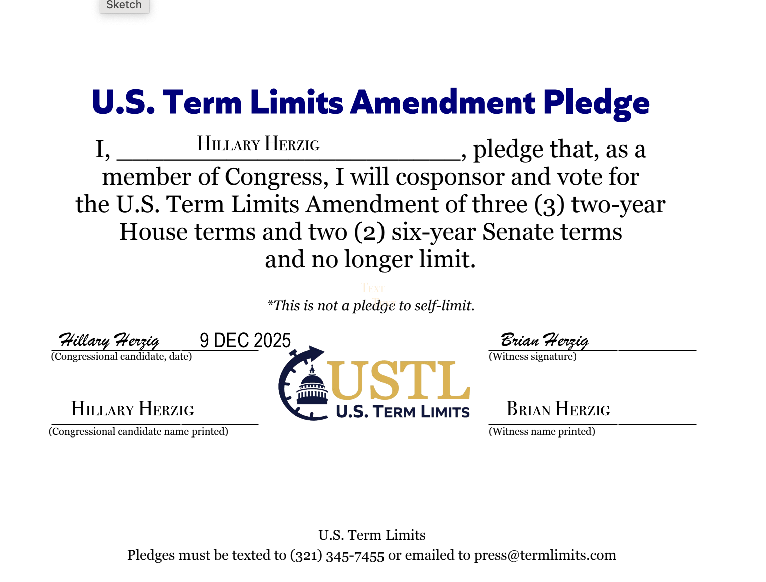 Hillary Herzig Pledges to Support Congressional Term Limits