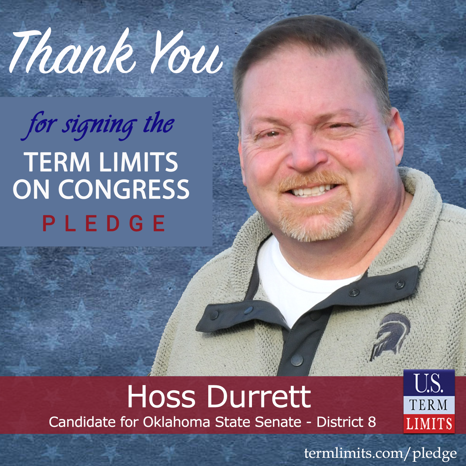 Henryetta, OK – U.S. Term Limits (USTL), the leader in the national, non-partisan movement to limit terms for elected officials, is gathering support from state lawmakers across the nation. Its mission is to get 34 states to apply for an amendment proposal convention specific to term limits on Congress. 2025 Oklahoma state senate candidate, Hoss Durrett (district 8), has committed support for term limits on Congress by signing the term limits convention pledge. Previously, candidates David Nelson, Bryan Logan and Ed Jolly also signed the pledge. The primary special election is scheduled for March 4, 2025.
