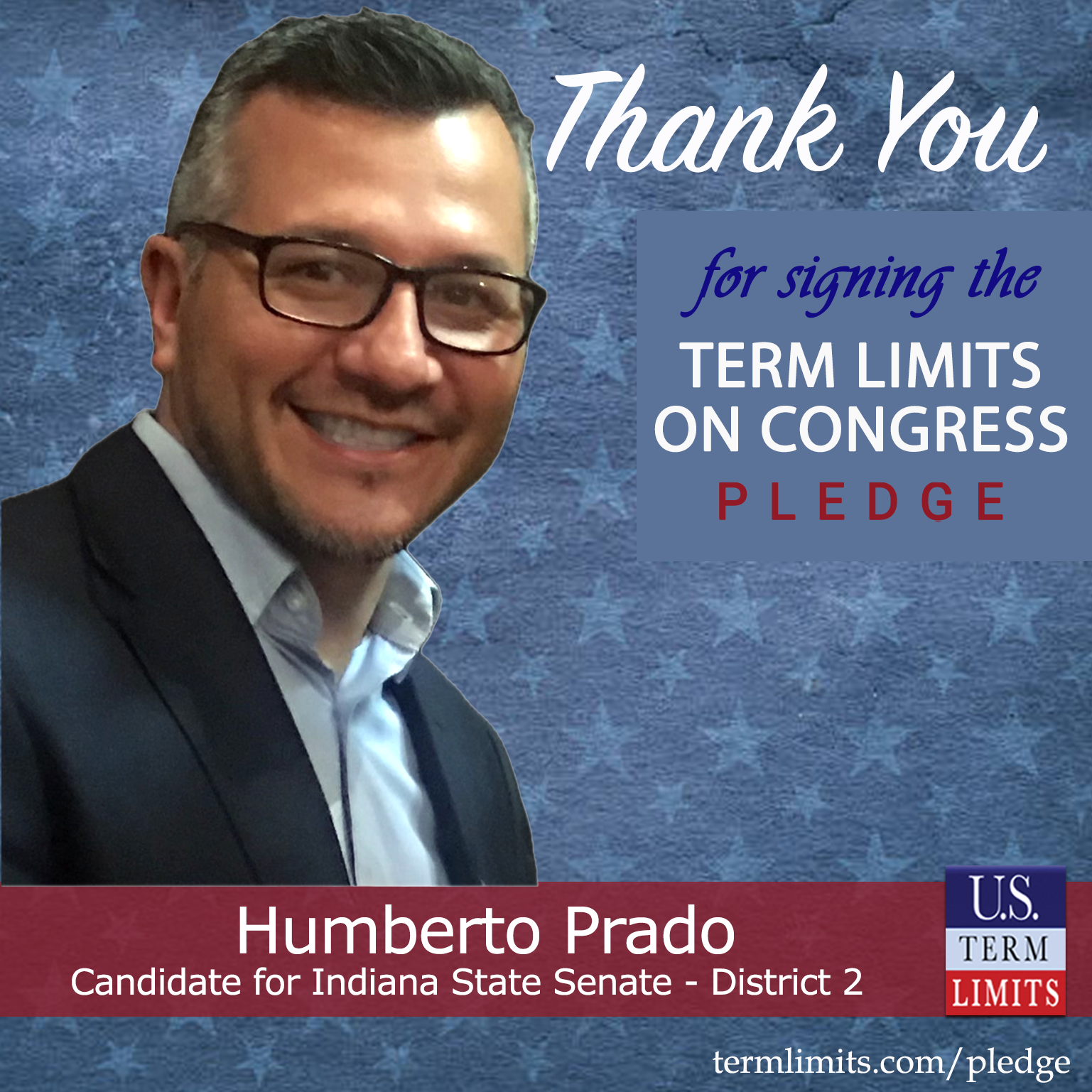 Whiting, IN– U.S. Term Limits (USTL), the leader in the national, non-partisan movement to limit terms for elected officials, is gathering support from state lawmakers across the nation. Its mission is to get 34 states to apply for an amendment proposal convention specific to term limits on Congress. Indiana state senate candidate, Humberto Prado (district 2), has committed support for term limits on Congress by signing the term limits convention pledge.