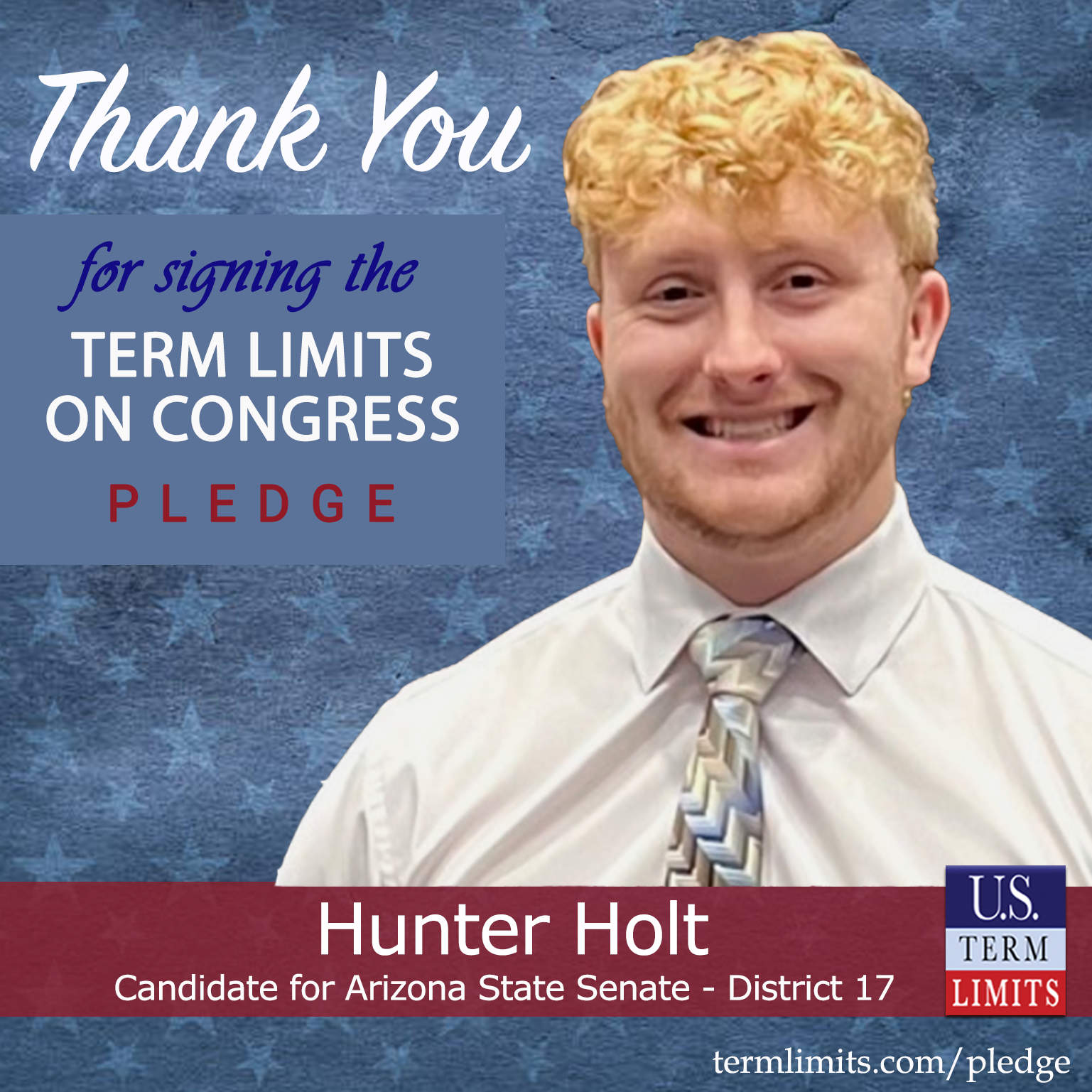 Oro Valley, AZ – U.S. Term Limits (USTL), the leader in the national, non-partisan movement to limit terms for elected officials, is gathering support from state lawmakers across the nation. Its mission is to get 34 states to apply for an amendment proposal convention specific to term limits on Congress. 2026 Arizona state senate candidate, Hunter Holt (district 17), has committed support for term limits on Congress by signing the term limits convention pledge. Holt is the first signer in this race.