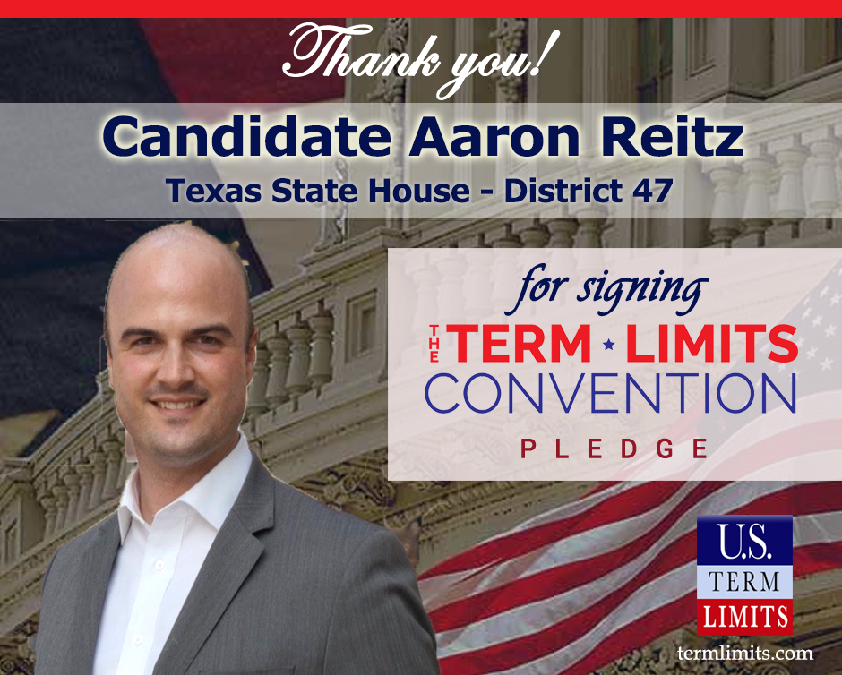 The U.S. Term Limits amendment pledge is provided to every announced candidate for federal office. It reads, “I pledge that as a member of Congress, I will cosponsor and vote for the U.S. Term Limits amendment of three (3) House terms and two (2) Senate terms and no longer limit.” The U.S. Term Limits constitutional amendment has been introduced in both the U.S. Senate by Senator Ted Cruz and his colleagues (SJR2) and the U.S. House by Representative Ralph Norman (HJR11).