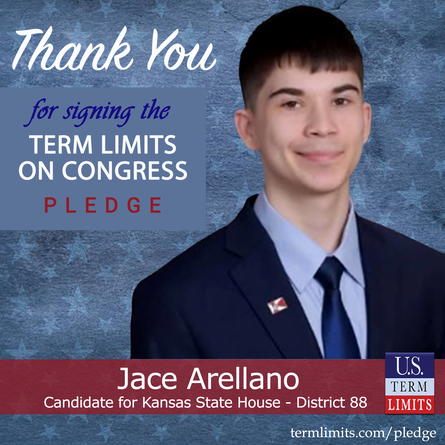 Wichita, KS – U.S. Term Limits (USTL), the leader in the national, non-partisan movement to limit terms for elected officials, is gathering support from state lawmakers across the nation. Its mission is to get 34 states to apply for an amendment proposal convention specific to term limits on Congress. 2026 Kansas state house candidate, Jace Arellano (district 88), has committed support for term limits on Congress by signing the term limits convention pledge. Arellano is the first signer in this race.