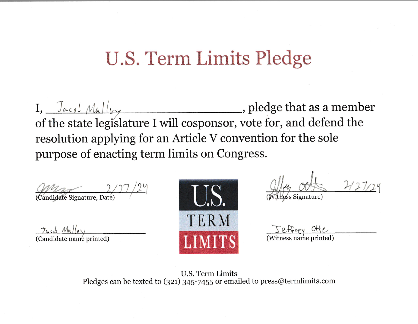 Jacob Malloy Pledges to Support Congressional Term Limits